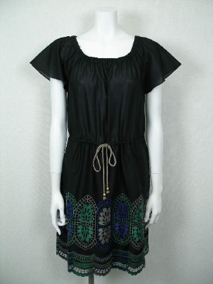 裾のカットワーク刺繍がとても上品な一着。ウッドのアクセとカゴバッグでカワイイ上品。大人のお出かけファッション!エレガンス度90%、フェミニン度10%。