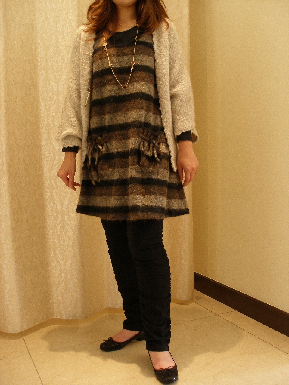 ここ何年もの間ナチュラル系に走りすぎた・・・。との事。本当はこんな感じがお好きとの事。クシュクシュパンツも良くお似合いです。