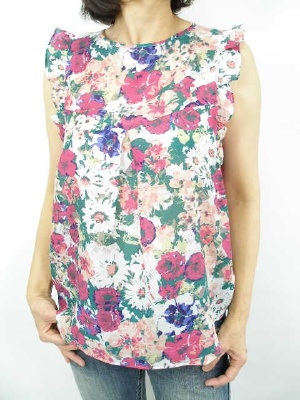 甘い花柄ブラウスはさらっとデニムでシンプルに着こなしたい。大人のガーリーカジュアルって感じです!アクティブ度80%、フェミニン度20%。