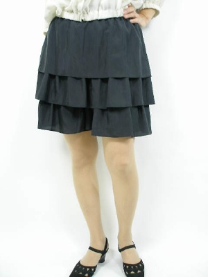Aラインワンピを裾からティアードをのぞかせて。甘口デザインをシックな色でまとめる。これが大人カワイイの近道!エレガンス度60%、フェミニン度40%。