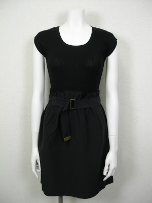 ニットとふんわりスカートを合わせたようなトリックワンピ。綺麗色ストールをサラリと巻いてお出かけしたい!エレガンス度90%、フェミニン度10%。