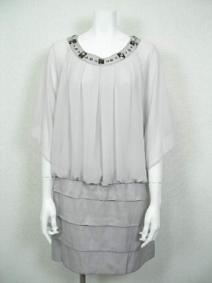シフォンやキラキラのビジューが女心をくすぐるワンピース。凝ったデザインでコーディネート要らず、しかもベルスリーブでニの腕もカバー!エレガンス度90%、スタイリッシュ度10%。
