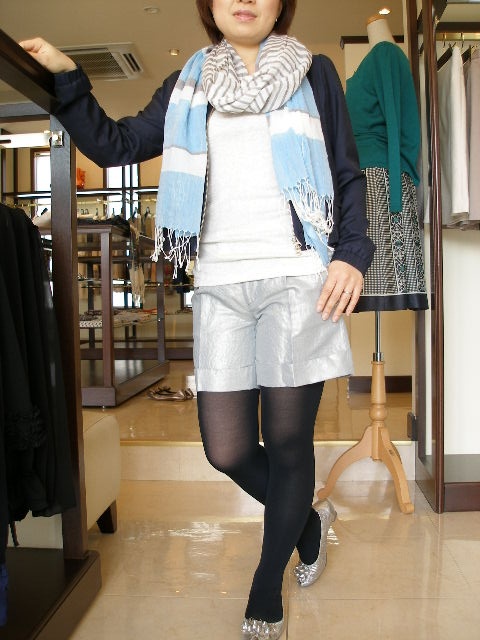半パンツ・・。周りのみんなから絶賛でした!ストール。ブルー良くお似合いですよ!