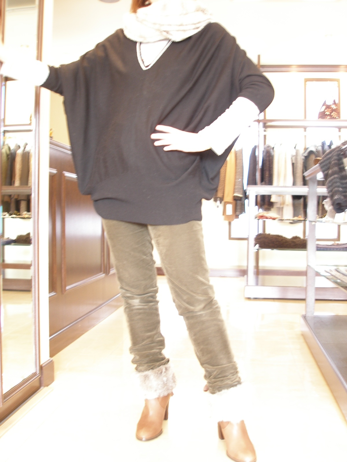 パンツスタイルが多い方です。今日はちょっとゆっくりできる一日ができたからとご来店。ブーツインも決まってステキです!