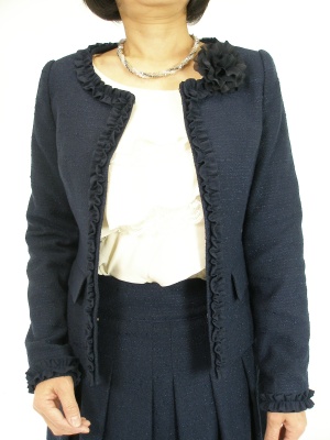 ツイードのJK+スカート。ネイビーは黒より甘く柔らかなイメージの中にキチンとした清楚さが出て式典にピッタリの装いです!