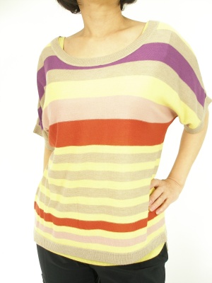 マルチボーダー柄のゆるニットは、細身パンツと相性が良いですね。タンクトップは、ボーダーの一色をリンクしました!アクティブ度80%、スタイリッシュ度20%。