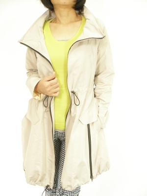 春らしい色使いのコーディネートをベージュの軽いコートが引き立ててます!アクティブ度70%、スタイリッシュ度30%。