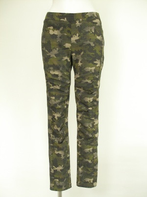 迷彩のレギパンをドレープシャツでエレガントに着こなして!スタイリッシュ度70%、エレガンス度30%。