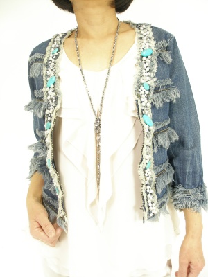 デコラティブなGジャンはチュールスカートで女らしく着こなしたい!スタイリッシュ度60%、アクティブ度40%。