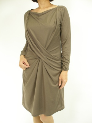 ギャザー使いが印象的なワンピースは、ネックレス一つでお洒落が完成します!エレガンス度70%、スタイリッシュ度30%。