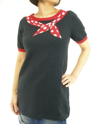 トロンプイユのニットとバッグ、ドット柄のスカート・・。流行のアイテムはシンプルコーディがお薦め!アクティブ度60%、フェミニン度40%。