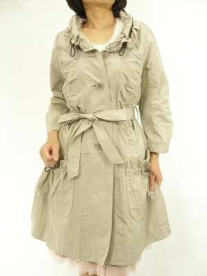 張りのあるスプリングコートはギュッとウエストマークしてフィット&フレアーのシルエットに!エレガンス度60%、フェミニン度40%。