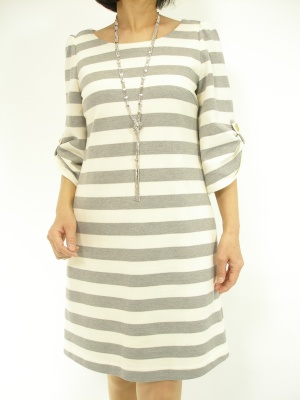 カジュアルなイメージのボーダーもこんなワンピースならエレガントです!エレガンス度70%、スタイリッシュ度30%。