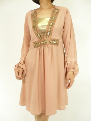 チュニックブラウスはワンピースとして着こなすとよりエレガントに!エレガンス度60%、フェミニン度40%。