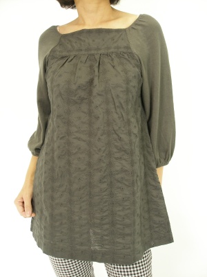 ナチュラル系チュニックをギンガムチェックとスニーカーで元気に着こなしてみました!アクティブ度70%、フェミニン度30%。