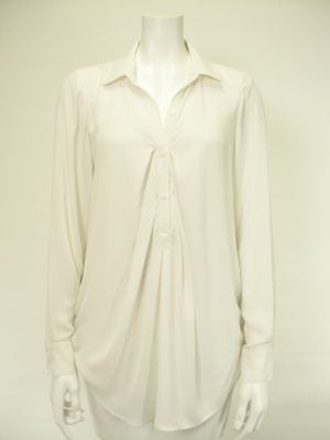 白シャツとタイトスカートのコンサバコーディを流れるようなロングカーディでスタイリッシュにアレンジ!スタイリッシュ度60%、エレガンス度40%。