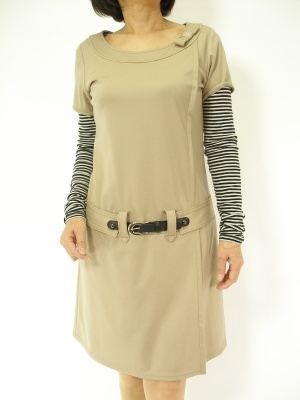 半袖ワンピースはボーダーのカットソーを組み合わせるだけでカジュアル感が加わってデイリーにも活躍しますね!フェミニン度70%、アクティブ度30%。