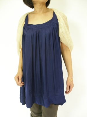 クリームイエローとネイビーブルーとの相性はピッタリ。パンツにカーキ系を加えて大人のエレガンススタイルに!エレガンス度60%、スタイリッシュ度40%。