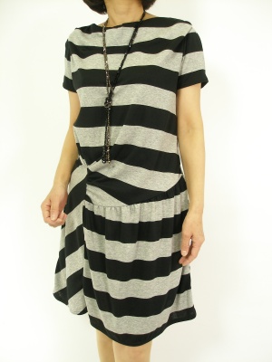 春のモノトーンコーディは個性的なデザインを選んで。黒のカーディガンがボーダーをシックに見せます!エレガンス度60%、スタイリッシュ度40%。