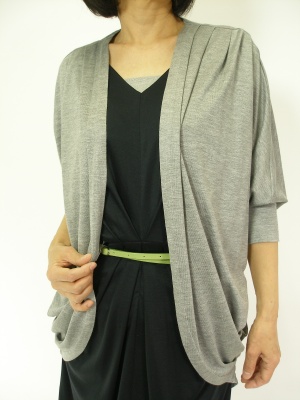 ドレープが美しいワンピとカーディのコーディネート。楽な着心地なのにとてもエレガントです!エレガンス度60%、スタイリッシュ度40%。