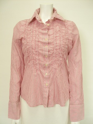 上品なチノスカートとピンクのシャツでちょっと上級カジュアルに。肩にかけたニットの色で全体にまとまりの有るコーディネートに!フェミニン度80%、スタイリッシュ度20%。