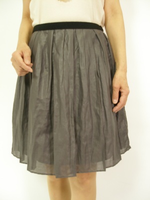 ふんわりスカートも地味色にするだけで大人可愛くなりますね。白のジャケットでウエストを押さえてバランスよく着こなして!フェミニン度80%、エレガンス度20%。