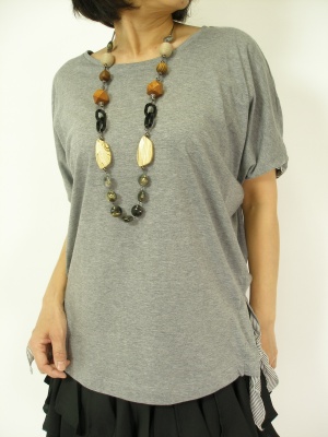 ゆったりしたドルマンカットソーとフリルのミニスカートで大人可愛いカジュアルに!スタイリッシュ度70%、アクティブ度30%。