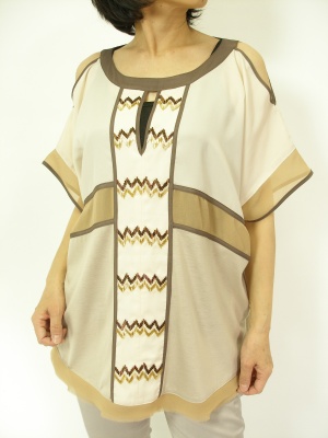 肩出しの個性派ブラウスは全身をソフトなトーンでまとめると上品に!スタイリッシュ度80%、アクティブ度20%。