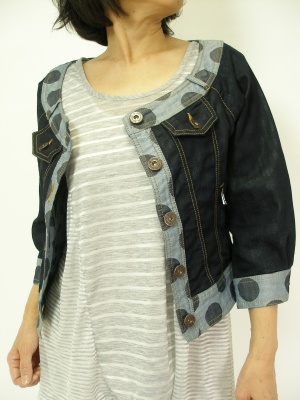 長めのタンクとパンツは淡色でまとめて、デニムのショートジャケットで引き締めたメリハリのあるカジュアルです!スタイリッシュ度60%、アクティブ度40%.
