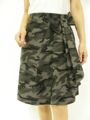 リボンが可愛い迷彩スカートを主役にしたい時は、白のポロシャツを合わせて!アクティブ度60%、フェミニン度40%。