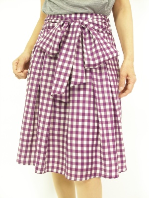 キュートなギンガムチェックはドレープカットソーを合わせると少しエレガントな表情に!フェミニン度60%、エレガンス度40%。