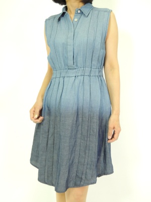 ナチュラルなダンガリーワンピには赤のベルトが良く映えます。その他の小物は白で統一して爽やかに!フェミニン度70%、アクティブ度30%。
