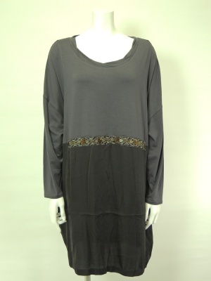 ゆったりしたドルマンワンピもビジュー付きならフェミニンな印象です!フェミニン度60%、スタイリッシュ度40%。