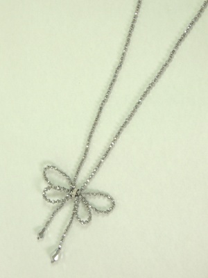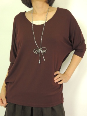 ゆったりしたラウンドネックのカットソーにはロングネックレスで深いVゾーンを作るとスッキリした印象に!フェミニン度60%、スタイリッシュ度40%。