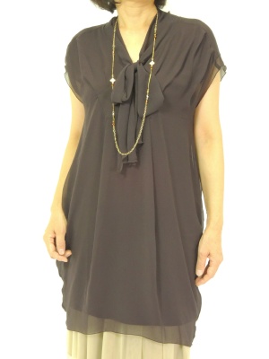 ミニワンピからスカートをチラリと見せて甘く仕上げました。スカートの見え方はウエスト位置で調節します!エレガンス度60%、フェミニン度40%。