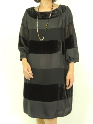 ふんわりボリューミーなブラックワンピ。真っ赤な小さめバッグがアクセントです!エレガンス度80%、フェミニン度20%。