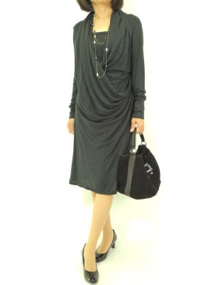 ドレープたっぷりのジャージワンピースは何も足さなくてもお洒落に決まります!エレガンス度90%、スタイリッシュ度10%。