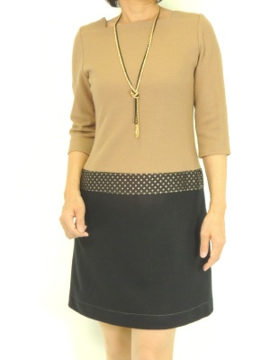 シンプルな切り替えワンピは少しレトロな印象。ファーバッグで遊び心をプラスして!フェミニン度80%、スタイリッシュ度20%。