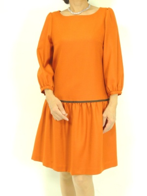 ダークカラーが多くなるこの季節、綺麗なオレンジ色が映えてオシャレです!エレガンス度60%、フェミニン度40%。