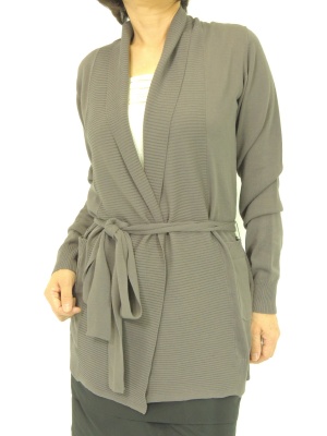 ロングカーディとストールを合わせ技ですらりと縦長に見せた辛口通勤スタイル!スタイリッシュ度80%、エレガンス度20%。
