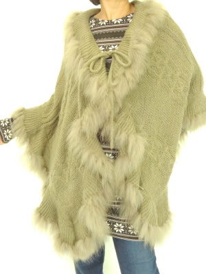 ボリュームのあるファー付きニットケープからフェアアイル柄がのぞく、冬らしいカジュアルコーデ!アクティブ度100%。