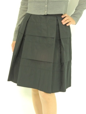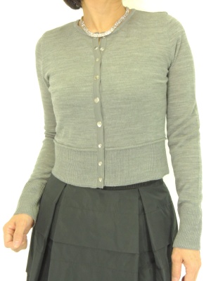 コンパクトなカーデとふんわりスカートでフィット&フレアのシルエットに。小物の艶感がアクセントです!フェミニン度70%、エレガンス度30%。