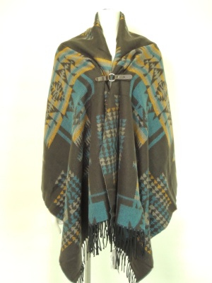 フォークロアなポンチョもカラーパンツをブーツインしてモードに着なしてみたい。スモーキーカラーをアクセントに!スタイリッシュ度60%、アクティブ度40%。