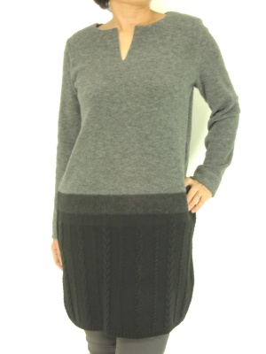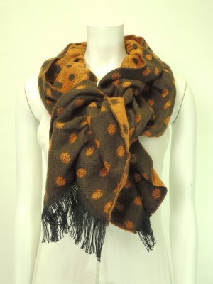 シックなニットワンピをドットのストールとレギパンで元気に着こなして!フェミニン度60%、アクティブ度40%。