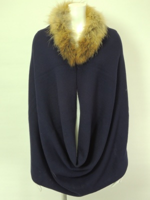 スヌードみたいなファー付きケープで黒のベースの着こなしに変化を付けて!フェミニン度60%、スタイリッシュ度40%。