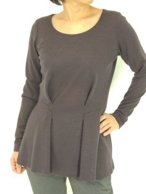 大流行のぺプラムトップスとアンクルパンツ。少しタイトなデザインを選んでストールを垂らせば、シャープな印象に!スタイリッシュ度90%、エレガンス度10%。