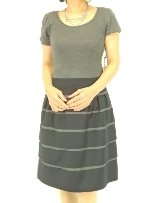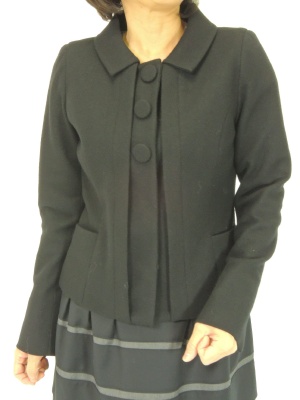 トップスがニットのワンピースはジャケットを羽織ってもすっきり見えます!エレガンス度90%、フェミニン度10%。