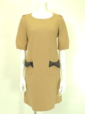 パフスリーブのワンピースは甘口コンサバなイメージ。ファー付きのバッグで少し遊び心をプラスして!エレガンス度60%、フェミニン度40%。