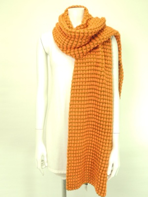 ニットワンピにボリュームマフラーをプラスしたナチュラル系甘口コーデ!アクティブ度60%、フェミニン度40%。