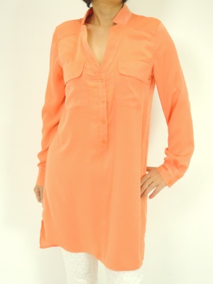 クリアーなオレンジ色のチュニックで春気分に。白パンツはアニマルの地柄入りで、さりげなくストールとリンクさせています!スタイリッシュ度80%、エレガンス度20%。